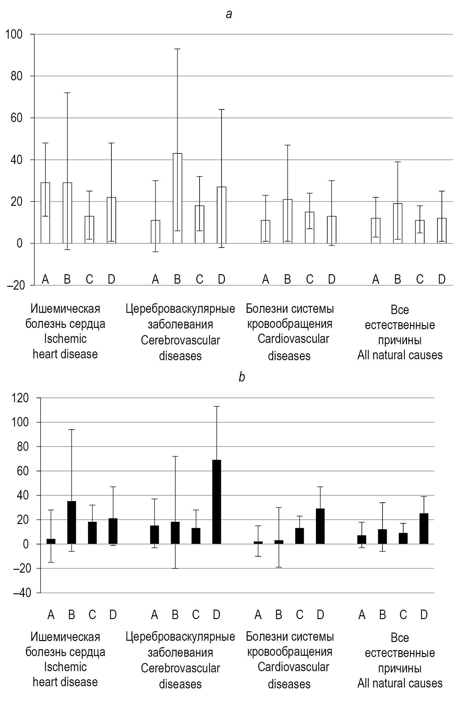 Архангельск Arkhangelsk | ИБС, БСК, БОД, все естественные причины CHD, CD, CSD, all natural causes | ИБС, ЦВЗ, БСК, БОД, все естественные причины CHD, CD, CSD, RD, all natural causes | ИБС, ЦВЗ, БСК, все естественные причины CHD, CD, CSD, all natural causes | |