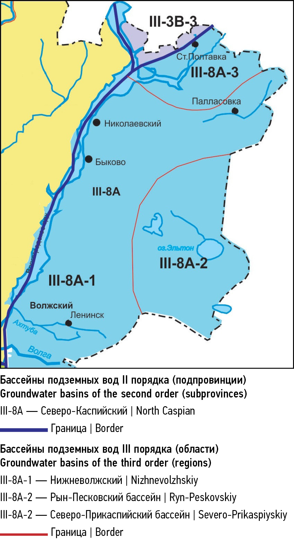 Fig. 1. Hydrogeological nature of the Trans-Volga Region within the administrative borders of the Volgograd region.