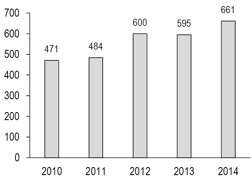 Fig. 1. Number of emergency medical calls per year for the period 2010–2014.