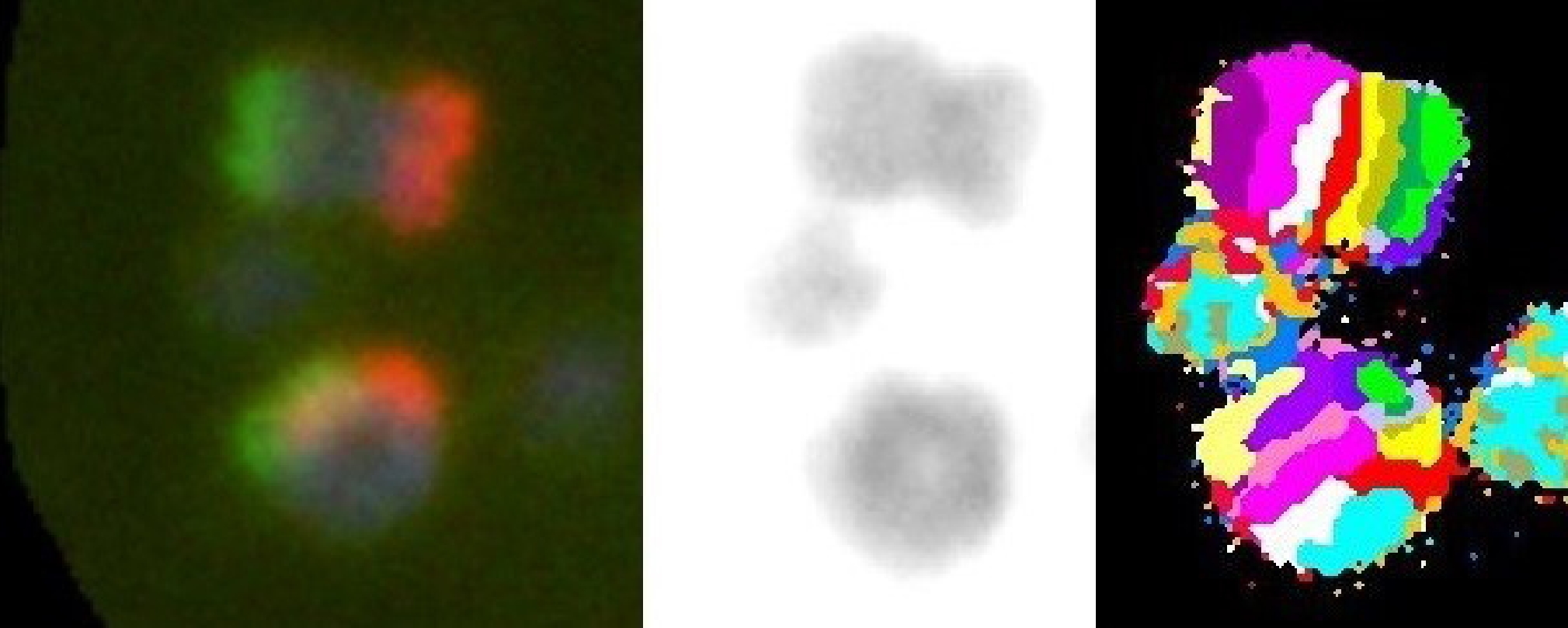 Для получения препаратов хромосом пипеткой раскапывали смесь на охлаждённое стекло (2 капли). Стекло сушили на термоплато при 40 °С. Качество препарата проверяли при фазово-контрастной микроскопии. После высыхания препаратов проводили флуоресцентную гибридизацию in situ.