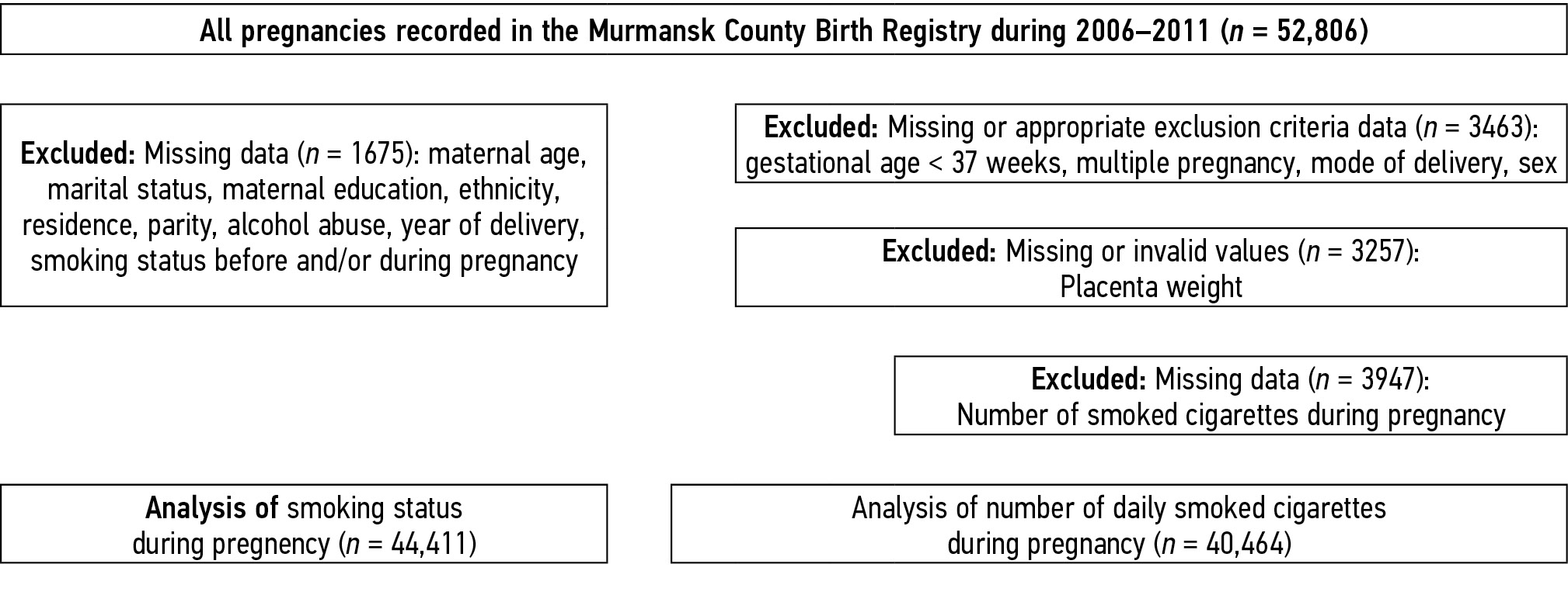- Anda EE, Nieboer E, Voitov AV, et al. Implementation, Quality Control and Selected Pregnancy Outcomes of the Murmansk County Birth Registry in Russia. International Journal of Circumpolar Health. 2008;67(4): 318–334. doi: 10.3402/ijch.v67i4.18339 EDN: LLMFJB