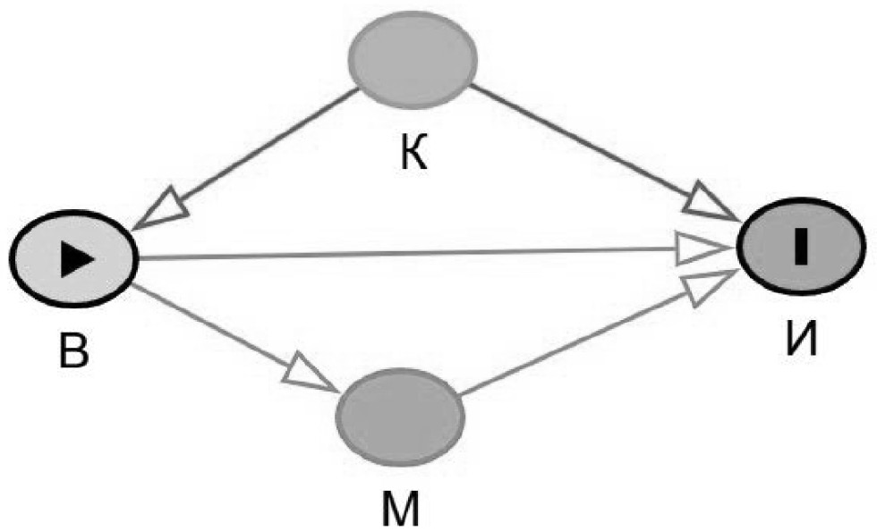 Рис. 3. Роли факторов (переменных) в контексте изучения причинно-следственной связи между воздействием и исходом.