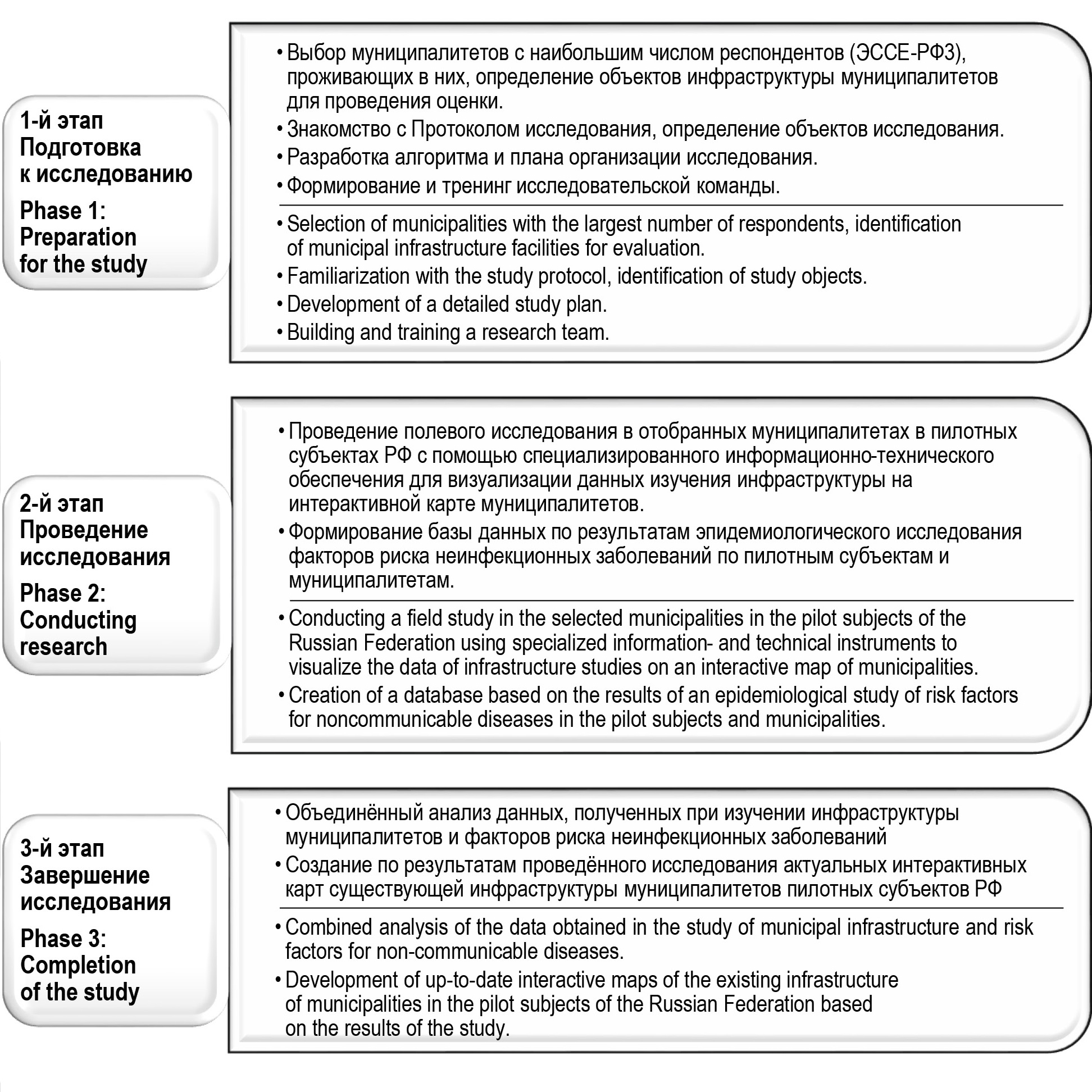 Fig 2. Stages of research in pilot subjects of the Russian Federation.