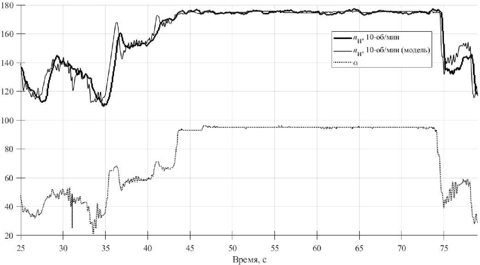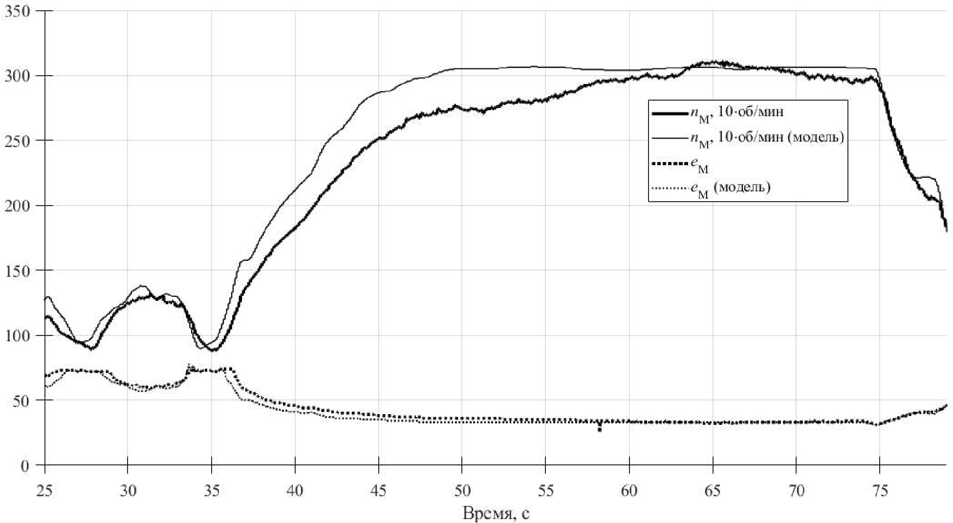10. Рис. 9. Частота вращения вала гидронасоса и степень нажатия на педаль ускорения в натурном и вычислительном эксперименте