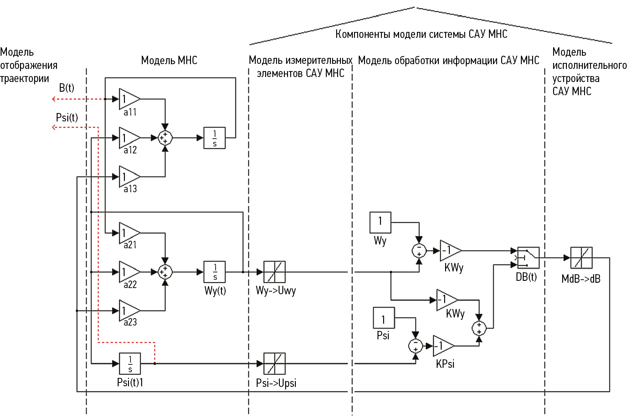 3 | Стабилизация БК на заднем курсе | ±ψ(RAD) | ψ(t), ωy(t) | δB = Kψ (ψ(t) – ψ) + (ωy(t) | Kψ, |