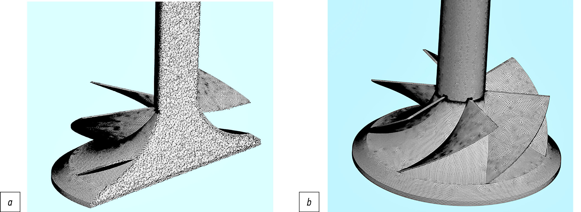 Для осуществления подготовки модели клапанов к расчётам в Ansys, создавались конечные элементы (КЭ), так называемая сеточная модель, которая занимает важную роль, так как от неё зависит правильность и точность расчёта, построение сеточной модели проводилось в среде Ansys Mesh. Для модели клапана завода изготовителя использовалась гексаэдрическая сетка (рис. 6), с показателями качества элементов по Element Quality: Max — 0,99; Average — 0,31, по Skewness: Min — 2,0434е-007; Average — 0,30. Для клапанов изменённой конструкции применялась тетраэдрическая сетка (рис. 7), с показателями качества элементов по Element Quality: Max — 1; Average — 0,84, по Skewness: Min — 6,3217е-005; Average — 0,22. Следовательно решение, полученное с помощью построенной сетки должно быть максимально приближённым, к нагрузкам оказываемым на клапан в действительности.