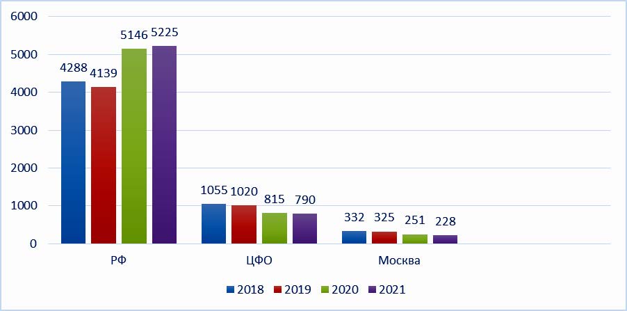 Однако данный показатель по Москве и ЦФО продолжает снижаться и составил 228 и 790 человек соответственно (рис. 3).