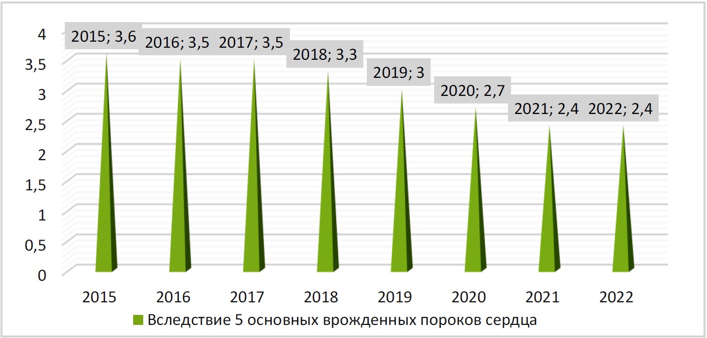 Согласно официальным данным, впервые прошли освидетельствование с 2015 по 2023 г. в Москве 3 467 детей с ВПС, из них по 5 основным группам – 1 176 детей. Также мы можем отметить снижение показателей по детской инвалидности: в 2015 г.он составил 190 человек, а в 2022 – 131 человек. Отмеченное снижение не говорит в целом о положительной динамике, поскольку на данный показатель могут влиять несколько факторов, таких как административные факторы и удельный вес детей [12].