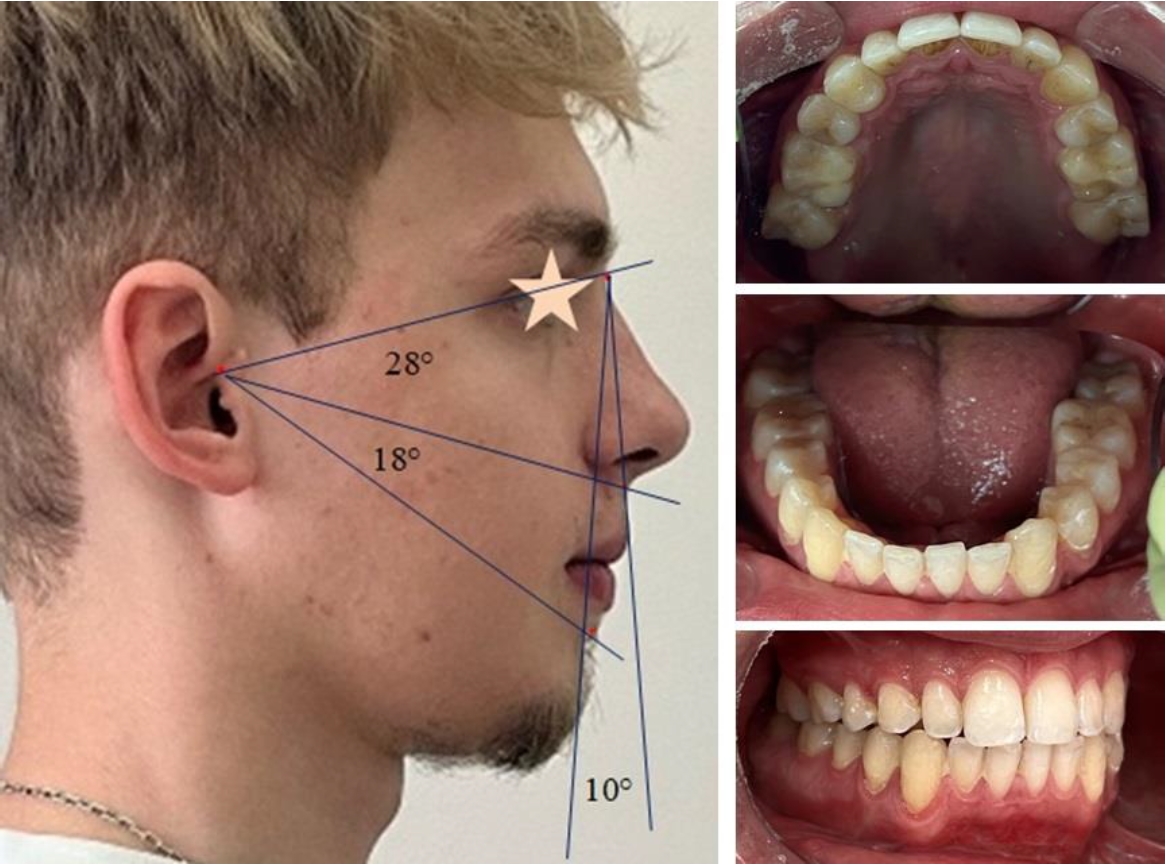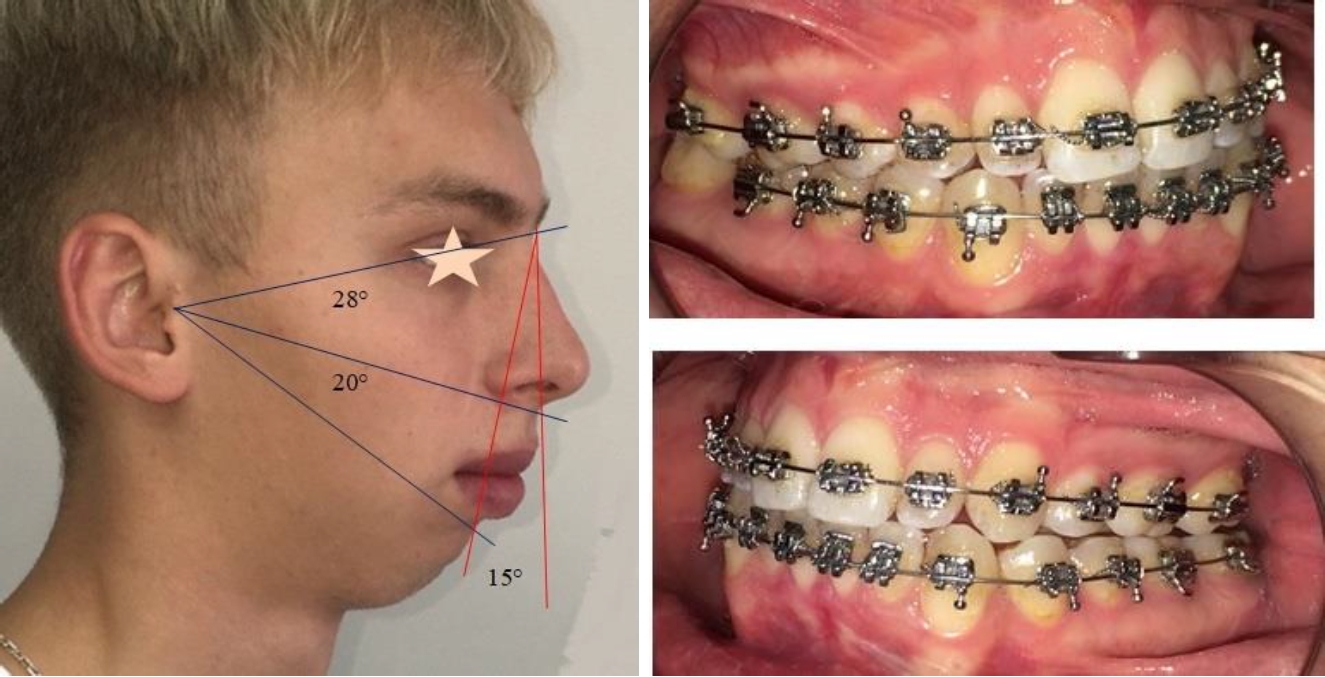 Рис. 4. Лицевые признаки и состояние окклюзионного статуса на этапе предхирургической ортодонтической реабилитации