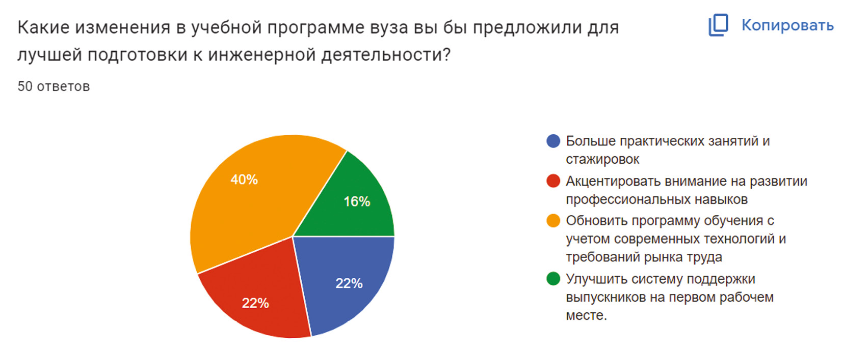 Рис. 2. Итог опроса: «Какие изменения в учебной программе вуза вы бы предложили для лучшей подготовки к инженерной деятельности?»